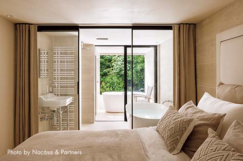 建築家の小形 究さん、インテリアデザイナーの小形美栄子さん夫妻が自邸を増築。寝室、浴室、ベランダが連なるプランによって徐々に開放感が増す特別なプライベート空間をかなえました。空間のつながりを生む内装材にも注目し、非日常な時間をもたらすベッド&バスルームのつくり方を学びます。