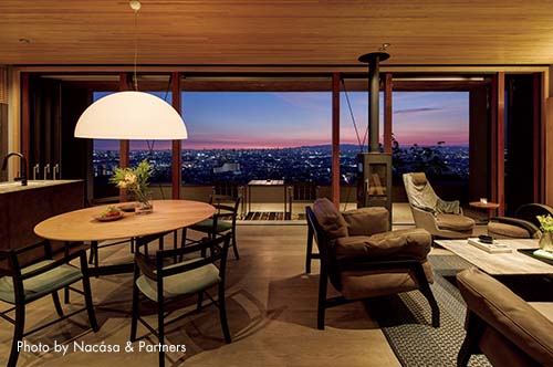 昼は自然光、夜はペンダントライトやフロアランプの光に照らされる住まい。そこにはさまざまな表情があり、その一つをつくり出すのが照明です。家具のように選んだ意匠照明や、空間を引き立てる設備照明など、明かりによって豊かに彩られた住宅6軒を紹介します。