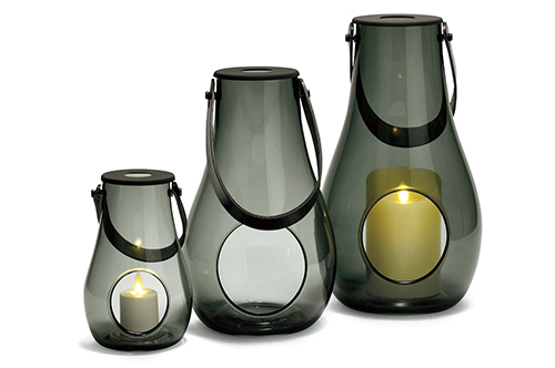 デンマーク・HOLMEGAARDのキャンドルランタンは、滴のように丸みのあるデザインが特徴。ガラス製の本体にレザーのストラップが付属し、持ち運びが容易。全3サイズ、全2色。左(φ100×H160)14,850円 納期:即日(在庫状況による)/リビング・モティーフ