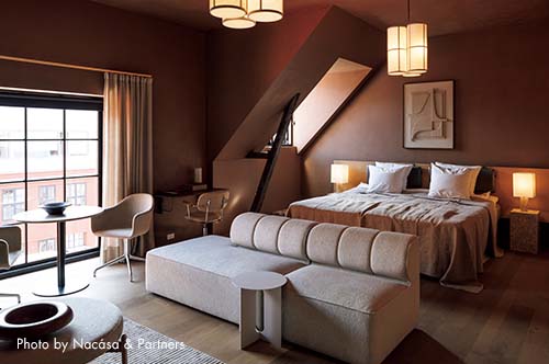 MENUとby lassenを統合し、インテリアブランドとしてリスタート。拠点は、再開発が進むノードハウンにある、かつて倉庫として使用されていた築100年の「Audo House」。現在は本社機能のほかショップやカフェ、レストラン、宿泊可能なレジデンスも備える。古典的理想と現代ミニマリズムの対話をテーマに、同ブランドの家具と厳選されたアートが織り成す没入型の空間展示で、訪れる人の足を止めた。